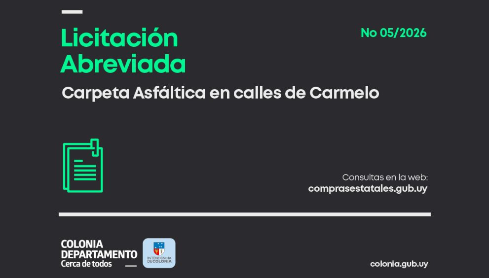La Intendencia de Colonia realizará Carpeta Asfáltica en calles de Carmelo, a través de la Licitación Abreviada Nª 5/026.