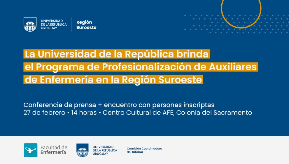 Este año, la Facultad de Enfermería comienza a dictar el Programa de Profesionalización de Auxiliares de Enfermería en la Región Suroeste de la Universidad de la República (Udelar), en los departamentos de Colonia y Soriano.