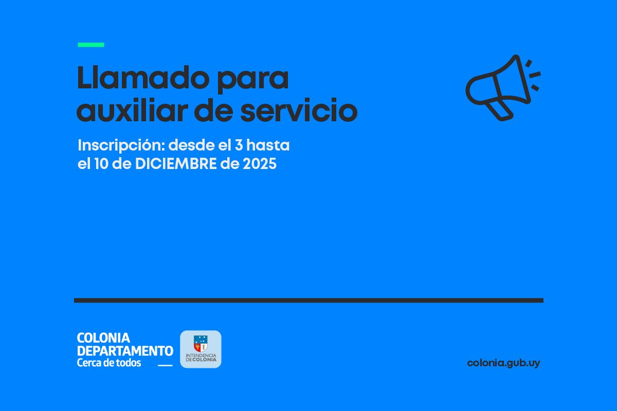 #Intendencia de Colonia Llamado público para 6 cargos zafrales de auxiliar de servicio Llamado Públicopara 6 cargos zafrales de Auxiliar de Serviciopara mantenimiento de los baños públicos de la ciudad de Colonia del Periodico Tarariras / 2 meses (37)