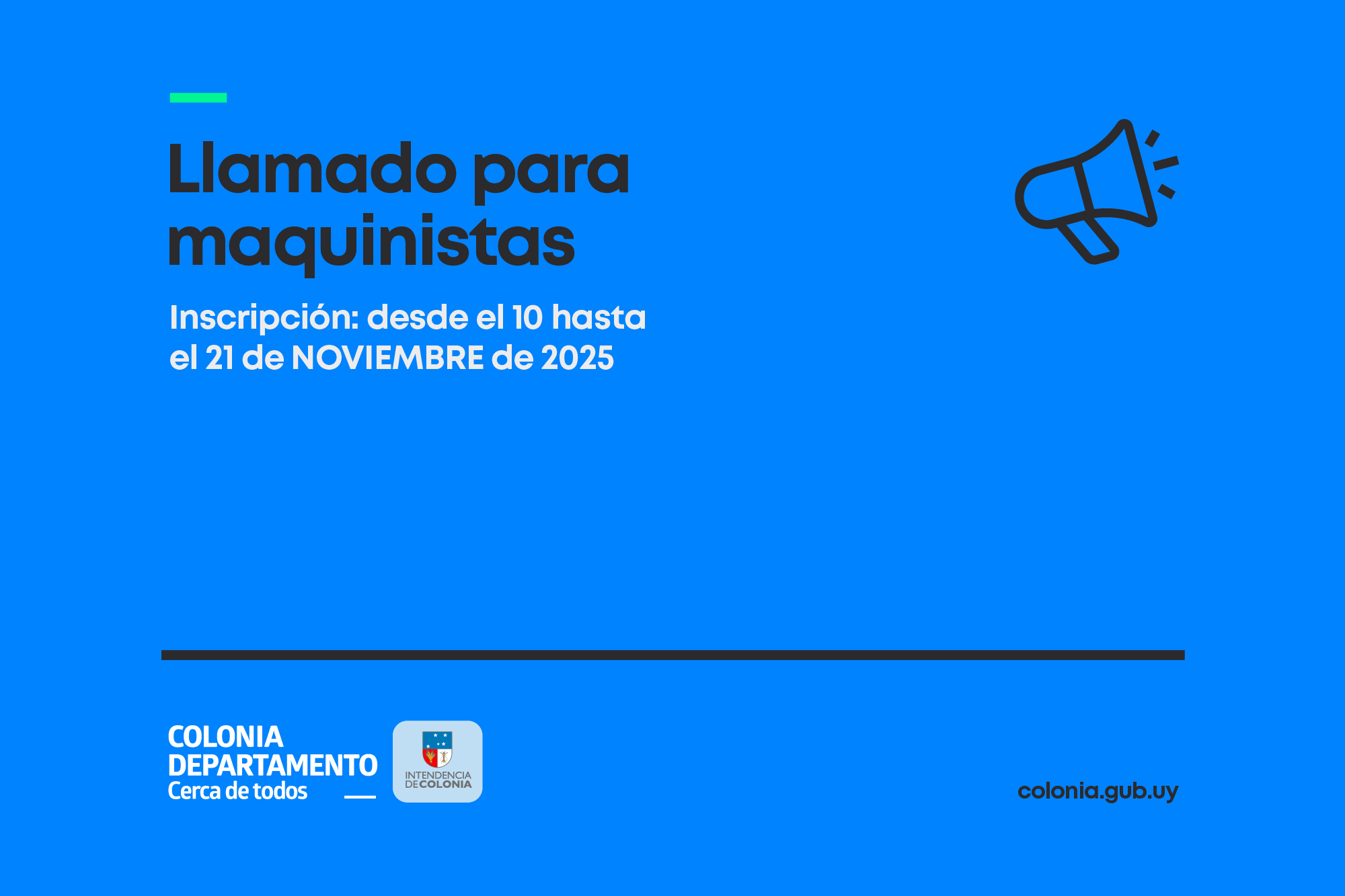 #Intendencia de Colonia Llamado para maquinista De acuerdo con la Resolución N°1325/025 de fecha 23 de octubre de 2025, recaída en el expediente EE2025/83001/02858, la Intendencia Periodico Tarariras / 3 meses (61)