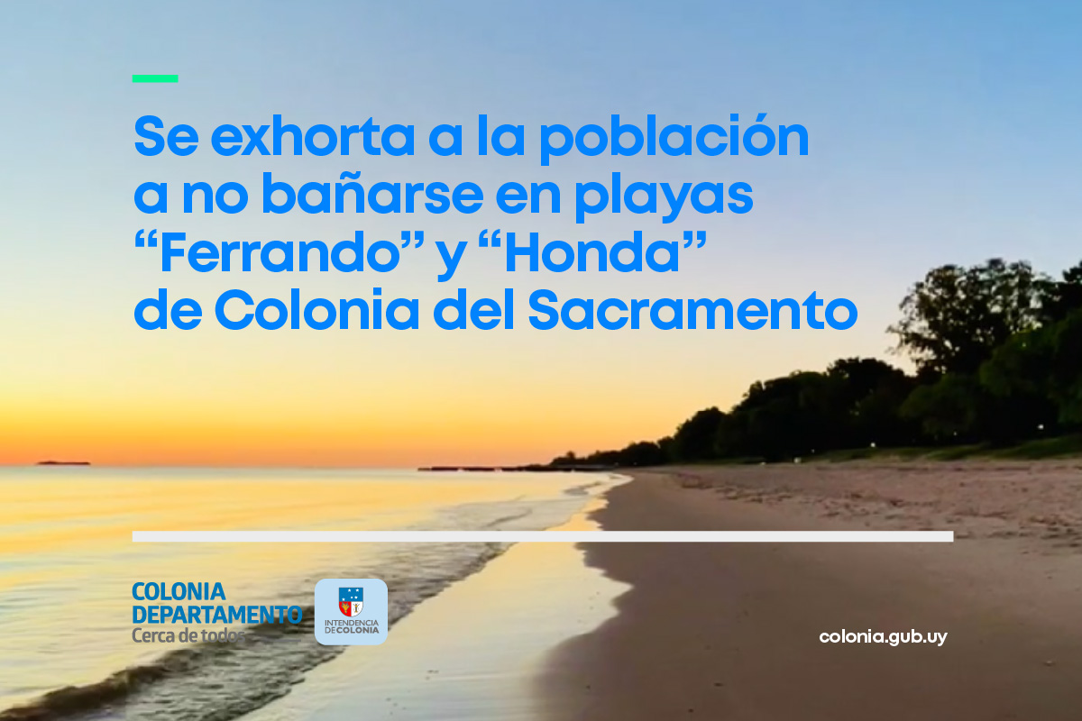 #Departamental Se exhorta a la población a no bañarse en playas “Ferrando” y “Honda” de Colonia del Sacramento Debido al comunicado emitido el día jueves 29 por OSE, donde se informa que debido a un desperfecto en el Periodico Tarariras / 2 días (41)