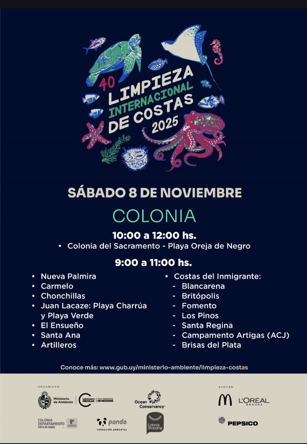 #Departamental El sábado 8 de noviembre se realizará la Jornada Internacional de Limpieza de Costas en Playas del Departamento de Colonia Con la coordinación de la Dirección Nacional de Calidad y Evaluación Ambiental (DINACEA, antes DINAMA) del Ministerio de Ambiente (MA), el Periodico Tarariras / 3 meses (66)