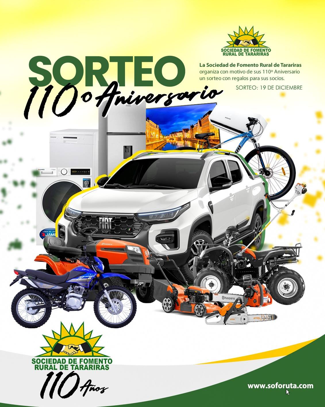 #Tarariras SOCIEDAD DE FOMENTO RURAL DE TARARIRAS. 110 AÑOS – GRAN SORTEO La Sociedad de Fomento Rural de Tarariras celebra sus 110 años junto a sus socios con un gran sorteo de Periodico Tarariras / 5 meses (90)